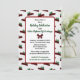 Gemütliches Weihnachts-Weihnachtsgeschenk-Swap-Einladungen mit weißem Elefant-Party und ganz anpassbar. Text kann leicht geändert werden. Rustikales Schwarz, Weiß, Rot und Grün Farbschema mit Vintagem roten LKW und Details zum Weihnachtsbaum.