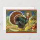 Diese Postkarte zeigt eine Vintage Darstellung eines Truthahns und Kornukokia mit Kürbissen, Trauben, Äpfeln und Mais mit einem Erntedank Gruß. Genießen Sie Ihre neue Vintage Türkei und Cornucopia Postcard!