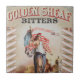 Vintage Werbung für Golden Sheaf Bitters mit der Göttin Columbia mit amerikanischer Flagge, Glatzenadler und Freiheitsmütze in der Mitte. Kornblätter und leere Banner für Text verlassen und rechts.