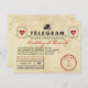 Passen Sie dieses Vintage Telegramm an und verkünden Sie Ihr Hochzeitsdatum auf lustige und einzigartige Weise! Der Hintergrund ist mit dunkelroten und schwarzen Akzenten sowie einem Mix aus Schreibmaschinen und Skript-Schriftart gestaltet.