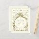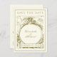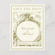 Mit einer wunderschönen klassischen Elfenbein "Save the Date" Postkarte mit einem goldenen Vintage-Bild von zwei Engeln auf einem Diamant Verlobung Ring. Alle Texte und Schriftart können geändert werden.