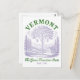 Embrace the timeless charm of Vermont, The Green Mountain State, with this exquisite travel souvenir postcard! Featuring vintage-style engraved illustrations that capture the essence of New England, you'll find an iconic maple tree with tapping buckets, nestled amongst rolling green mountains and a rustic sugar shack cabin.