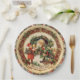 This is a classic holiday pattern filled with old-fashioned Christmas charm. It features repeating pictures of Santa Claus surrounded by green pine wreaths and shiny gold and red ornaments. The design also shows little children dressed in vintage red coats carrying gifts and baskets. The background is decorated with pinecones and winter greenery, creating a cozy and traditional festive look.
