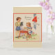 Retro / Vintage Geburtstagskarte. Adorable kleine Junge und Mädchen und ihre Welpe mit einem Tee-Party! Grüße an Ihrem 4. Geburtstag! Sweet Birthday Card für einen Vierjährigen!