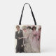 Schöne Tote-Taschen im Überdruck! Erhältlich in zwei Stilen und zwei Größen! Vintage Illustration Liebe und Romantik Viktorianische Hochzeitszeremonie Bild mit der Braut und Bräutigam zu heiraten. Die Jungvermählten knien auf einem Kissen und die Brautmädchen tragen elegante extravagante Hüte mit Federn und halten Sträucher von Blume. Künstlerin: Harrison Fisher, mit dem Titel The Wedding.