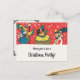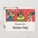 Einfach die Weihnachtszeit-Party Einladung anpassen. Vintage Abbildung Viktorianisches Weihnachtsbild mit einer extravaganten Familie von Party in eleganten Kleidern gekleidet und mit verpackten Weihnachtsgeschenken. Sie laufen durch den Schnee, um an einem Weihnachtsfest mit ihren Schals im Wind zu teilnehmen.