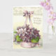 Auf einem Vintagen Geburtstagskartenbild befindet sich ein rosa Korb mit lila Veilchen und der Meldung "Beste Wünsche für einen glücklichen Geburtstag" auf der Vorderseite der Karte. Die Botschaft in der Karte lautet: "Man denkt immer ganz besonders an dich und wünscht dir heute und jeden Tag die schönsten Dinge im Leben."