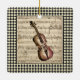 Vintage Violinillustrierung mit subtiler Farbgebung auf dem Hintergrund antiker Noten und Harlequin-Schnittlinie