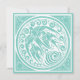 Vintage Abbildung aquamarines Jugendstil-Design mit mehreren fliegenden Vögeln in der Mitte, umgeben von Wirbel von Wind- oder Meereswellen mit Schmetterlingen und Sternen in den Ecken.