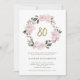 Dieses hübsche und trendige 80. Geburtstagsjubiläum besticht durch einen Vintagen, rosafarbenen Kranz mit Aquarellbäumen und Rose, dunkelgraues Blattwerk und Blätter auf weißem Hintergrund. Moderne Imitate Goldskripttypografie sagt "80", und die Rückseite der Einladung ist eine weiche Blusenfarbe.