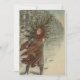 Eine elegante Vintage Retro Weihnachtsgrüße Weihnachtskarte. Whish hat eine Wasserfarbe Vintag zeichnend Mädchen tragen einen Baum stehend im weißen Schnee. Und wir haben auf der Rückseite dieser Weihnachtskarte eine anpassbare Begrüßung, die Sie behalten oder durch Familiennamen ersetzen können. Greifen Sie es zu und schicken Sie Ihren Freunden und Ihrer Familie Ihre Grüße und Wünsche mit Eleganz und Vintagen originellen Farben.