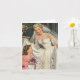 Klicken Sie durch, um auf die Entwurfswerkzeuge zuzugreifen, wenn Sie diesem leeren Brautparty Dankeschön-Karte einen benutzerdefinierten Text hinzufügen möchten. Vintage Illustrations-Liebe und Romantik-Bild mit einem Blume-Mädchen mit einer glücklichen, lächelnden Braut in ihrem schönen Kleid mit verzierten Bögen an ihrem Hochzeitstag. Es ist Zeit, verheiratet zu werden!
