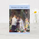 Eine Vintage Abbildung einer Hochzeitsfeier zeigt eine Szene in einer Kirche oder Kathedrale mit einer Braut und einem Bräutigam, die ihre Gelübde teilen und Ringe austauschen. Auf der Vorderseite der Karte steht: "Segnungen an das glückliche Paar." Die Botschaft in der Karte lautet: "Möge Ihr Engagement vertiefen, Ihre Freude zunehmen und Ihre Liebe von diesem Tag an stärker werden."