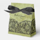 Einfache Anpassung von Gastgeschenk Hochzeit-Boxen. Fügen Sie einfach Ihre Infos hinzu! Klicken Sie durch, um den Stil oder die Größe des Schriftartes zu ändern. Vintage Illustration Liebe und Romantik Viktorianische Stil Blume Scroll Floral Decorative Border mit einem variierten grünen Hintergrund. Eine schöne Wahl für eine Frühjahrshochzeit im Garten.