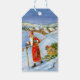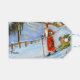 Maßgeschneiderte Geschenketiketten mit einem Vintage-Bild von Weihnachten Vater ziehen eine Schlitte von Geschenken durch den Schnee, und benutzerdefinierten Text, um es zu personalisieren.
