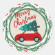 Fröhliche Weihnachten Vintages Rotwaggon mit Weihnachtsbaumstickerdesign
