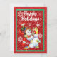 Vintage Snowman Weihnachts Halbfalzkarte. Metallische grün und rot Glitzer schauen Hintergrund.