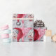 Vintage und bezaubernde Weihnachtsverpackung mit rotem und rosa Hintergrund.