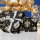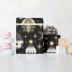 Dieses Vintage Geschenkverpackungsdesign bringt all diese guten nostalgischen Gefühle. Die Geschenkpackung weist ein schönes und elegantes Muster aus Vintagen, schwarz-goldenen Glasschmuck auf.