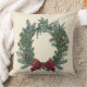 Vintage Weihnachtskranz mit verschiedenen immergrünen Kleider, Pinecones und einem roten Satin-Bogen. Die Rückseite des Kissens ist ein kostenloser Schatten von Urlaub rot.