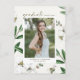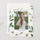 Melden Sie Ihren Abschluss mit dieser anpassbaren Abschluss Ankündigung Postkarte. Weiße Blume und Grünpflanzen in Aquarelltönen. Personalisieren Sie diese Foto Abschluss Ankündigung Postkarte, indem Sie ein Foto und Ihre Daten hinzufügen. Diese botanische Abschluss-Ankündigung ist perfekt für jedes Event-Thema.