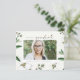 Mit diesem individuell gestaltbaren Abschluss laden wir Sie zu Ihrer Abschlussfeier ein. Weiße Blume und Grünpflanzen in Aquarelltönen. Personalisieren Sie diese Foto Abschluss Einladung durch Hinzufügen eines Fotos und Ihre Daten. Diese botanische Abschluss-Einladung ist perfekt für jedes Event-Thema.
