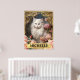 Vintage weiße Katze und rosa Rosen Poster