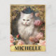 Wunderschönes Vintages Watercolor Weißes Kat und Rosenblütendesign mit goldfarbenem Blätter