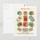 Diese Postkarte ist eine Reproduktion einer Vintagen Werbung für verpackte Tees wie extravagantes Ceylon und Langong. Sie lautet: "Jeder nimmt einen Platz im Reich des Tees ein."