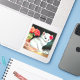 Aufkleber mit einem weißen Kätzchen. Wenn das Kätzchen mit großen blauen Augen starrt, schmücken rote Blume seine Ohren. Eine Vase rote Rosen sitzt neben dem weißen Kätzchen. Ein wunderbares Geschenk für Katzenliebhaber und Viktorianische Kunstliebhaber!