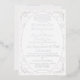 Das Design zeichnet sich durch einen prächtigen Hintergrund des Bildes von reinweißer Spitze aus. (Auch in Vintag-weiß erhältlich) Ein zarter silberner blüh verbessert jede Ecke. Das richtige Format für eine traditionelle katholische Hochzeitseinladung wird in einem eleganten Brautpavillon präsentiert und von einem silberfarbenen Oval umgeben. Die Rückseite weist den gleichen Hintergrund auf das Monogramm von Braut und Bräutigam und ein elegantes Kreuz und Ringe Symbol. Großartiges Design für das klassische "Old Money" Bridal Thema. Design ist auch in Acryl und Qualitätspapieren erhältlich. Entworfen, um sich mit der Vintagen White Lace Katholic Wedding Suite zu koordinieren.