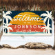 Vintages Wiedersehen Beach Sunset Begrüßungsbanner für Familien. Passen Sie alle Texte und Grafiken so an, dass sie Ihrem Party entsprechen.