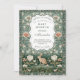 This baby shower design features a classic woodland illustration with a gentle bunny nestled among lush florals and greenery, inspired by vintage botanical and storybook art. The deep green palette, ornate floral border, and soft antique details create a timeless, cozy aesthetic with an old-world charm.