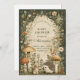This baby shower design features an enchanting woodland scene with illustrated mushrooms, soft greenery, and adorable forest animals, inspired by vintage storybook and botanical artwork. Earthy greens, warm neutrals, and an antique parchment center create a cozy, timeless forest aesthetic with gentle old-world charm.