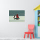 Eine Vintage Segeljacht in Rot segelt über die Cardiff Bay.