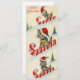 Mit dieser Vintagen Weihnachtskarte mit drei niedlichen Kätzchen, die eine Weihnachtsmütze tragen, auf weißem und rotem Bonbon reiten, können Sie Ihren Lieben Freude & Frieden schenken.