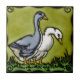 Vintage Ära Keramik Fliesen Bild von zwei Enten, eine grau, eine weiß, auf einem Farn grünen Hintergrund.