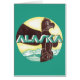 Vintage Illustration Reisegepäck-Etikett aus Alaska mit einem Native Alaskan Eskimo Totem Pol mit Adler.