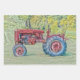 Vintage alte rustikale Land roten Bauerntraktor in einem Feld von Gras Kunsthandwerk decoupage Packpapier Blatt Set von drei. Bildrecht Marg Seregelyi Fotografie.