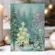 Vintage Aquarellwald Hirsche Retro Weihnachtskarte. Dieses Design zeigt zwei Hirsche in einem schneebedeckten Wald, der auf einen dekorierten Weihnachtsbaum starrt. Was für eine schöne Retro-Urlaubsszene. Personalisieren Sie dieses maßgeschneiderte Design mit Ihrem eigenen Innen-Gruß.