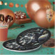 Weltraumbezogene Geburtstagsparty-Teller. Surreale KI-Kunst, die einen im Weltraum schwimmenden Astronauten mit Planeten und Monden darstellt. Hyper realistisch Comic Stil Astronaut im Weltraum.