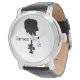 Uhr, Klassische Damenuhr mit schwarzen Lederarmband