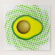 Avocado zeichnend mit Halbtoneffekten auf Bild angewendet. Hintergrund mit grünen Punkten. Geschenkidee für Avocadoliebhaber jeden Alters.