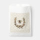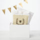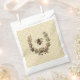 Vintage Biene und Kranz-Illustration auf gemustertem Hintergrund.