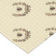 Vintage Biene und Kranz-Illustration auf gemustertem Hintergrund.