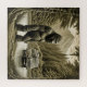 Vintage Farben Sasquatch oder Bigfoot gehen aus dem Wald zu einem Retro-RV laufen.