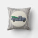 Dieses Vintage Blaue Weihnachtsbaumkissen zeigt meine originale Aquarellmalerei eines LKW mit einem Weihnachtsbaum auf einem Vintag inspirierten blauen und cremefarbenen, gestreiften Hintergrund. Ideal für Ihr Land, Bauernhaus oder das Dekor eines Steinhauses.