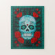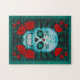 Vintager blauer Zuckerschädel mit Rosen-Plakat Puzzle