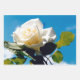 Weiße Rose unter blauem Himmel. Das pulsierende Foto einer blühenden Rose ist ein großes Kunstgeschenk an der Blumenmauer. Die ruhige Schönheit der weißen Rose spiegelt neue Anfänge, Reinheit, Loyalität und Unschuld wider. Weiße Rosen symbolisieren die junge Liebe, die die Braut für ihren Ehegatten hat. Weiße Rosen symbolisieren auch das Fundament einer Beziehung, weshalb sie oft an einem Hochzeitstag gesehen werden. Die weiße Rose ist eine traditionelle Blume der Hochzeit. Die weiße Rose ist eine passende Blume, um eine neue romantische und eheliche Bindung zu feiern.