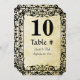 Vintager Blumenkorsett Hochzeitstisch Nr. Gold und schwarze Grenze und Text mit grauem Vintagem Blumenmuster
